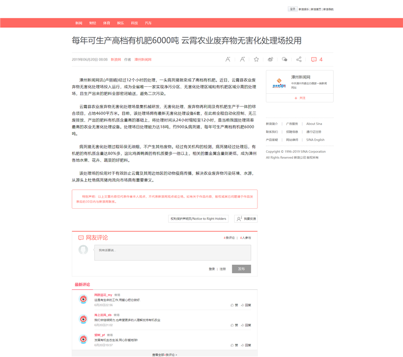 2019年9月5日,福建省委機關(guān)報《福建日報》發(fā)布題為“讓病死豬變身有機肥”的新聞報道,將我司雷建強總經(jīng)理主導(dǎo)研發(fā)病死豬無害化設(shè)備的創(chuàng)業(yè)故事作為雙創(chuàng)代表的先進事跡進行宣傳報道。